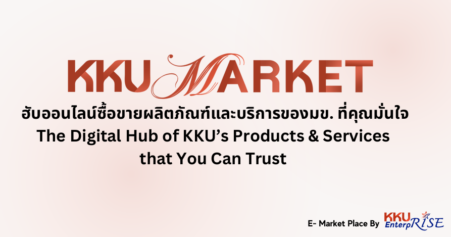 KKU MARKET Hub ออนไลน์ซื้อขายผลิตภัณฑ์และบริการของมข. ที่คุณมั่นใจThe Digital Hub of KKU’s Products & Services that You Can Trust คือ E-Marketplace ที่ดำเนินการโดย KKU Enterprise มีเป้าหมายเป็นศูนย์กลางหรือฮับในการนำผลิตภัณฑ์และบริการที่มาจากผลงานของนักวิจัยมหาวิทยาลัยขอนแก่น รวมถึงจากเครือข่ายความร่วมมือต่างๆ มาทำการตลาดออนไลน์และจัดจำหน่ายอย่างครบวงจร องค์ประกอบ 4 ระบบของแพลตฟอร์ม License การบริหารจัดการสิทธิบัตรและอนุสิทธิบัตรจำนวนมากกว่า 1,000 รายการ เพื่อนำมาใช้ประโยชน์ในเชิงพาณิชย์ ผลิตภัณฑ์และบริการ การจำหน่ายผลิตภัณฑ์และบริการของมหาวิทยาลัยขอนแก่นและพันธมิตร ด้วยฐานข้อมูลสารสนเทศที่มีความทันสมัย เพื่อความสะดวกและรวดเร็วของผู้รับบริการ ระบบตลาด การให้บริการ Platform/Application เพื่อเป็นช่องทางในการดำเนินงานด้านการตลาด การสื่อสาร และการสร้างแบรนด์ การลงทุนร่วมทุน การสรรหานักธุรกิจและนักลงทุนที่มีศักยภาพทั้งในและต่างประเทศ เพื่อร่วมลงทุนกับมหาวิทยาลัยขอนแก่น