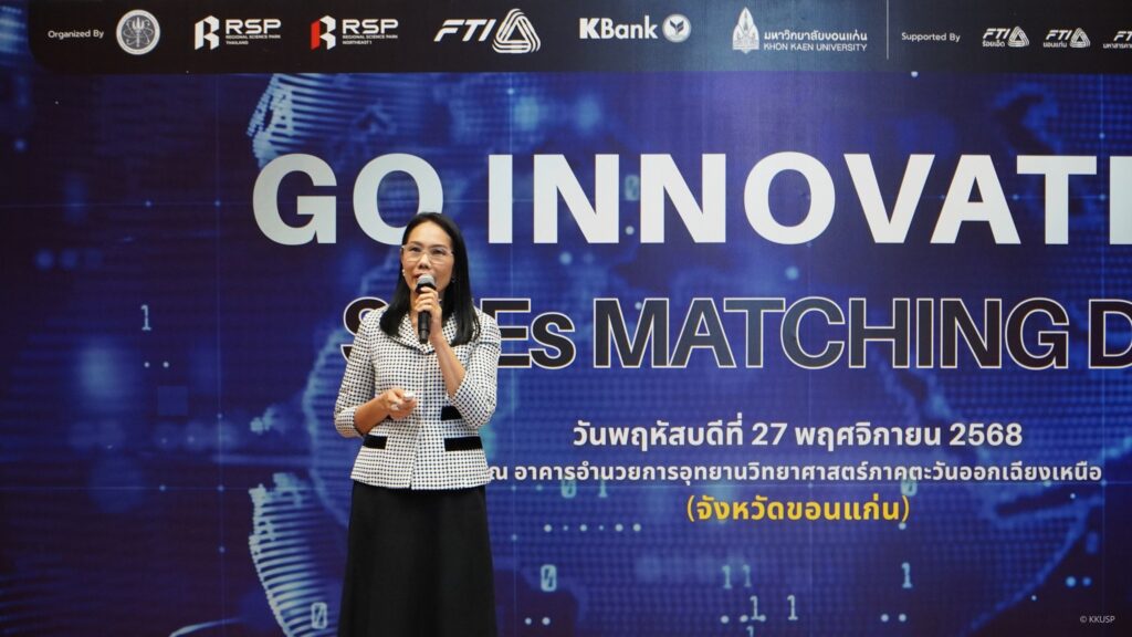 เมื่อวันที่ 27 พฤศจิกายน 2568 กระทรวงการอุดมศึกษา วิทยาศาสตร์ วิจัยและนวัตกรรม (อว.) ร่วมกับ สภาอุตสาหกรรมแห่งประเทศไทย จัดกิจกรรม “Go Innovation SME Matching Day by MHESI & FTI” ณ อาคารอำนวยการ อุทยานวิทยาศาสตร์ภาคตะวันออกเฉียงเหนือ มหาวิทยาลัยขอนแก่น โดยมีวัตถุประสงค์เพื่อเชื่อมโยงผลงานวิจัย เทคโนโลยี และนวัตกรรมจากมหาวิทยาลัยไปสู่การใช้ประโยชน์ในภาคธุรกิจและอุตสาหกรรม ตลอดจนสนับสนุนผู้ประกอบการ SME ให้สามารถเข้าถึงเทคโนโลยีที่พร้อมต่อยอดเชิงพาณิชย์ได้จริง