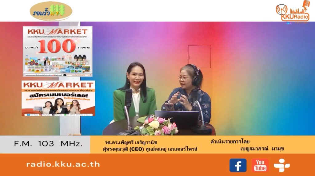 เมื่อวันศุกร์ที่ 26 มีนาคม 2568 ศูนย์เคเคยู เอนเตอร์ไพรส์ โดย รศ.ดร.เพ็ญศรี เจริญวานิช Chief Executive Officer (CEO) ได้เข้าร่วมประชาสัมพันธ์แพลตฟอร์ม KKU Market ในรายการ “รอบรั้วมข.” โดยมีคุณเบญจมาภรณ์ มามุข เป็นผู้ดำเนินรายการ